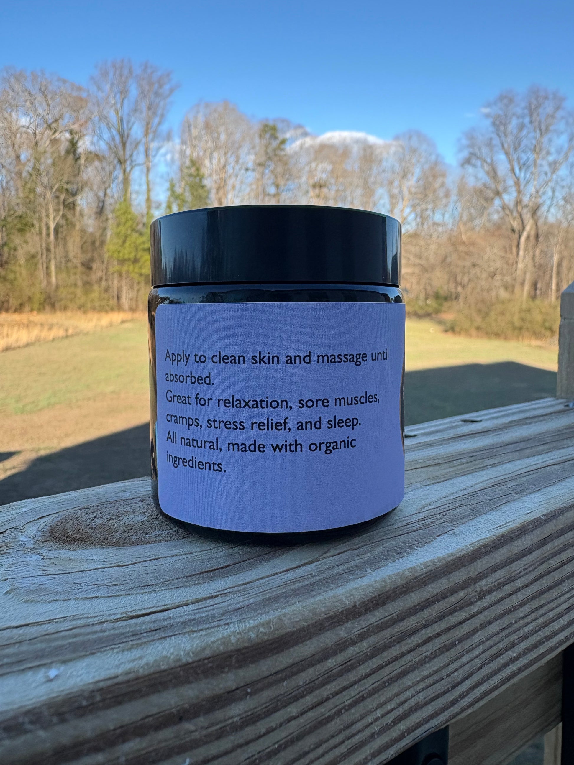 Ingredients: Shea butter, beeswax, magnesium oil, coconut oil, lavender essential oil, frankincense infused olive oil.